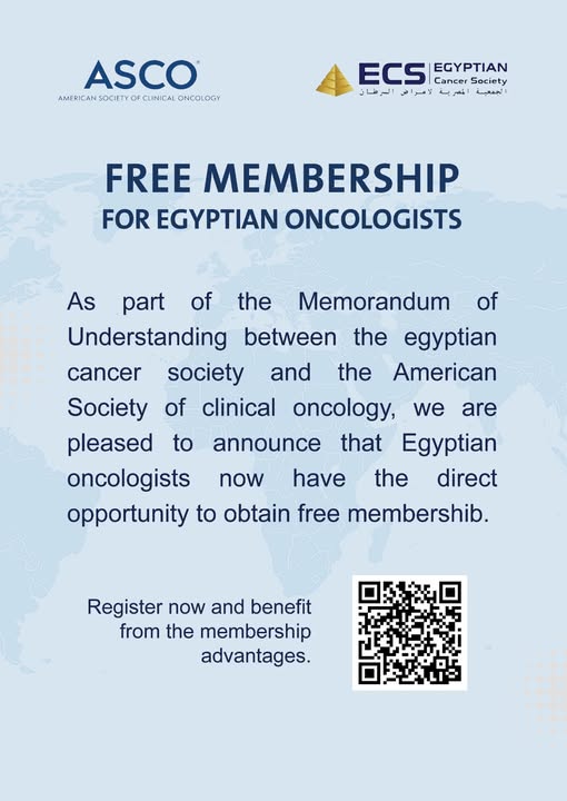 ๐ Free full membership in the American Society of Clinical Oncology (ASCO) for all oncologists practicing in the Arab Republic of Egypt.
